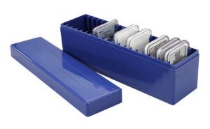 Slab Box Nr. 359; Praktische, stabiele plastic opbergbox voor 20 slabs. Elke slab heeft een eigen compartiment. Dit is een uitstekende, ruimtebesparende, veilige en betaalbare oplossing voor het opbergen van uw slabs.